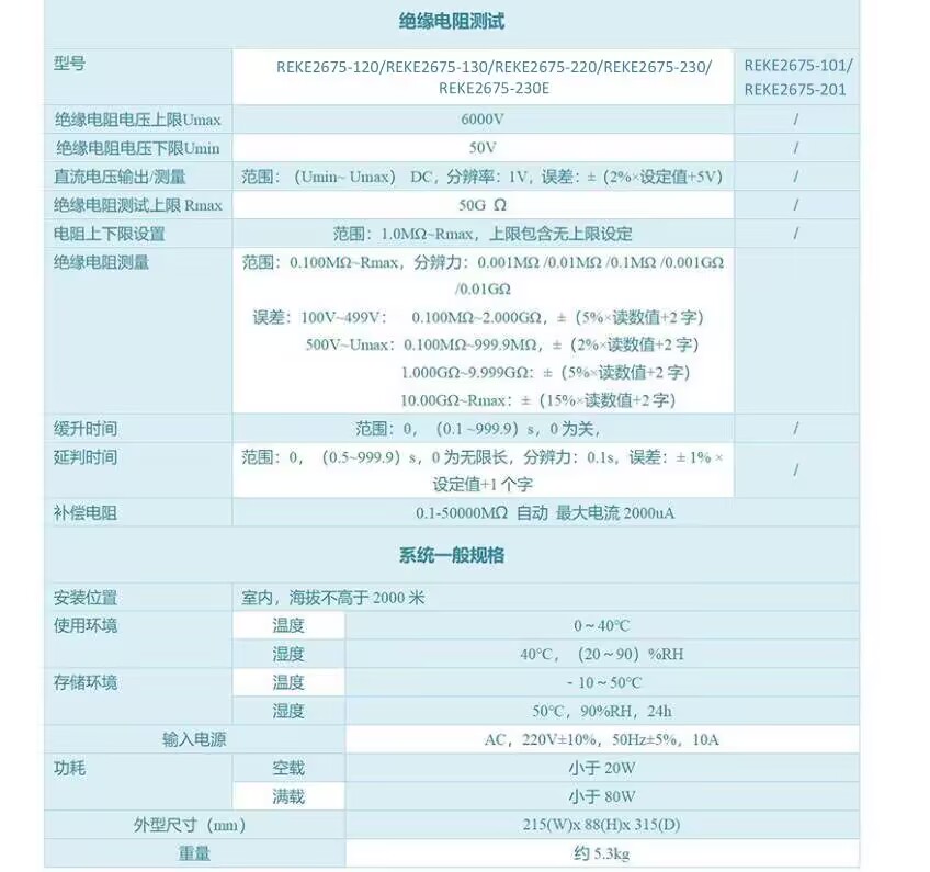 REKE2675-系列交直流耐压绝缘分析仪,涵盖交流耐压、直流耐压、绝缘电阻、电弧侦测、开路侦测等功能于一体,整机尺寸为2U/半宽,深度300mm,小巧轻便,精准高效,可靠稳定,接口丰富。