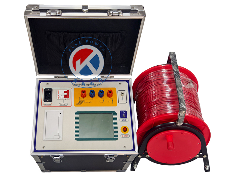 REKE-5A 接地网阻抗测试仪是一种高精度测试仪器,广泛应用于变电站等领域,用于测试接地电阻及相关参数。该仪器具有体积小、重量轻、携带方便、抗干扰能力强、精度高等特点。仪器采用一体化结构,内置变频电源模块,输出电源频率连续可调,频率可更改为 45Hz 或 55Hz,内置高速处理器核心,并采用高端数字滤波技术,从而有效避免了工频电场对测试的干扰,从根本上解决了强电场干扰下准确测量的难题。大量现场测试和用户使用情况表明,在变电站恶劣的电磁环境下进行接地网测试时,该接地网接地电阻测试仪的测量数据准确、稳定、重复性好,是测量大中型接地网特性参数的常用仪器。