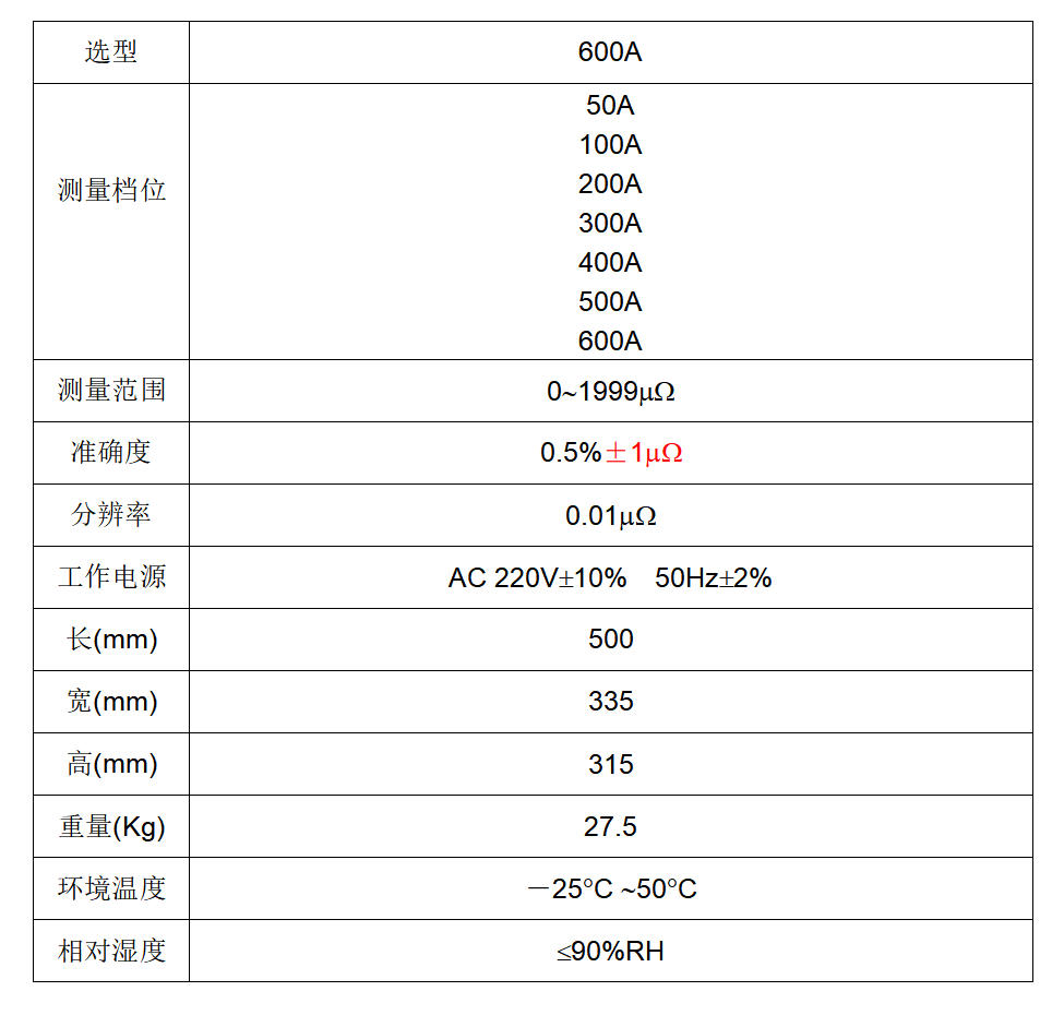 温度补偿自动折算电阻:可以预设温度,自动折算标准温度下的电阻值。也可以使用温度传感器(选配)实测温度。