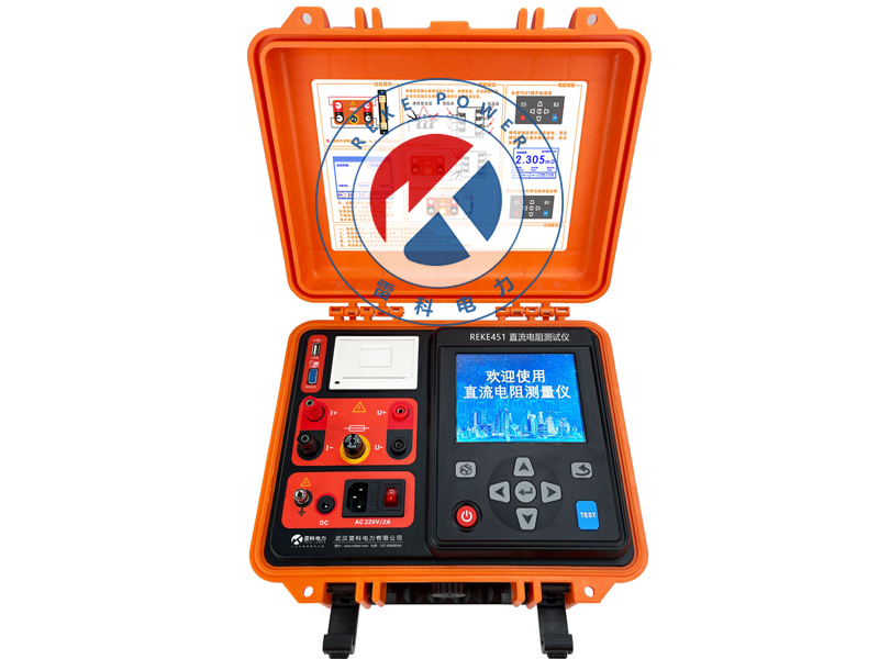 REKE-451直流电阻测试仪(又称毫欧表)专为变压器、互感器、电抗器等感性线圈的直流电阻测量而设计。它具备10A大电流输出和1MΩ高阻测量能力,兼顾低值和高阻测量需求。内置锂电池,采用高速A/D转换和程控电流源技术,具有温度换算及反电动势、过热等多重保护功能。5.6寸彩色液晶屏配合简易按键,操作直观。支持蓝牙连接专用APP,实现数据上传处理,适用于出厂、交接、预防性试验等多种场景。