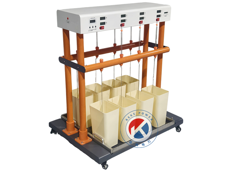 REKE-JS6 绝缘手套(鞋)耐压试验装置是绝缘靴(手套)批量试验的专用设备,有效地解决了以往不规则的测试方法,简化了测试程序,提高了检测速度,减轻了检测强度,保障了检测人员的安全,可靠地鉴别绝缘手套(靴)的泄漏电流,绝缘老化和工频耐压等参数,可同时检测六只绝缘手套(靴)。