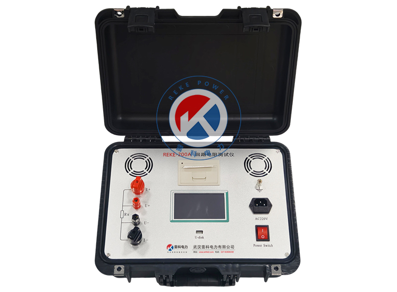 REKE-200A 操作面板采用人体工学设计,符合操作习惯,采用高频开关电源和数字电路技术,适用于开关控制设备回路电阻的测量。测试电流采用国家标准推荐的直流100A。