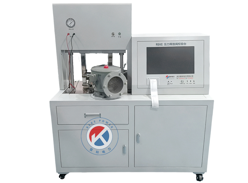 REKE-904 压力释放阀校验台主要对以下项目开展检测: 外观质量检查 、时效开启压力试验 、开启压力试验 、关闭压力试验、 密封压力及密封性能 。 该校验装置主要用于油浸式电力 设备上压力释放阀的校验 , 其模拟油浸式电力设备内发 生故障时压力释放阀的动作机理 , 利用空气压力来测试 压力释放阀的开启压力和关闭压力。